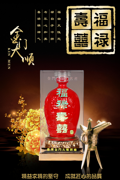 金門大順酒廠股份有限公司 為臺灣金門第一家合法民營酒類制造業(yè)者,多年來以生產(chǎn)好酒為宗旨,秉持傳統(tǒng)古法釀造技術(shù),廣受消費者好評。